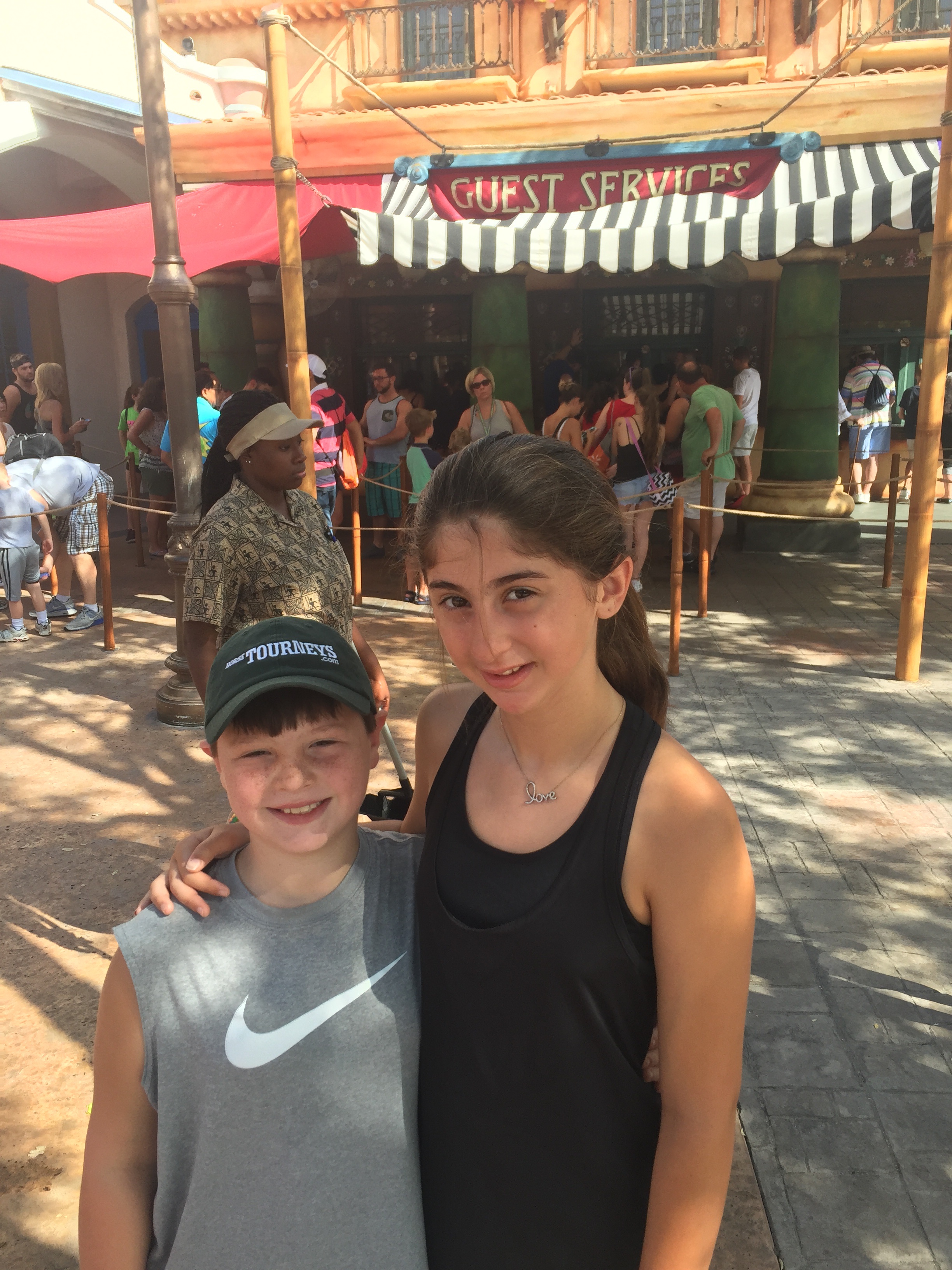 After considerable debate, the judges felt that Sarah’s refusal to wear mouse ears or any other silly, theme-park-type hat was a positively winning choice so as not to deflect any attention from Joshua’s beautiful headgear. Therefore, two winners. Well done, all around.