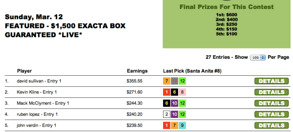 Lastly our $1,500 Guaranteed Exacta game went to David Sullivan.