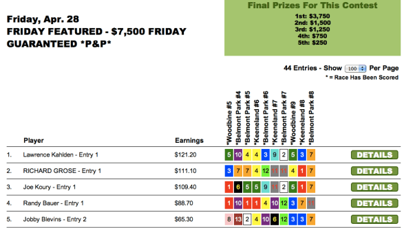 Final scores are always a function of the prices that come in, but our biggest gross tally of the weekend came (in just 10 races) on Friday…
