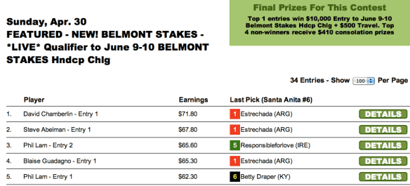 Our first Belmont Stakes Handicapping Challenge qualifier took place on Sunday.