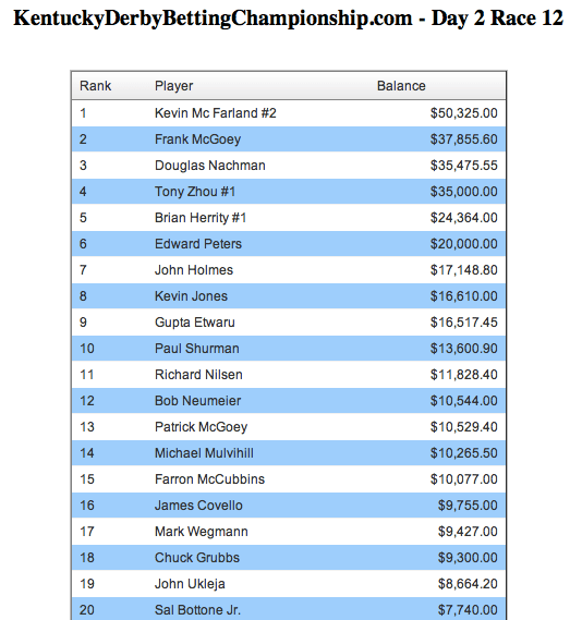 Congratulations to Kevin McFarland, winner of this weekend’s Kentucky Derby Betting Championship.