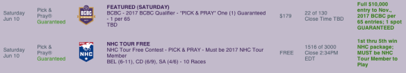In addition to the regular, Saturday BCBC qualifier—a Pick & Pray offered for $179—there’s an absolutely free NHC qualifier open to all 2017 NHC Tour members. If you are a member, you’d be silly not to play. The top five finishers will all punch their tickets to Vegas next February.