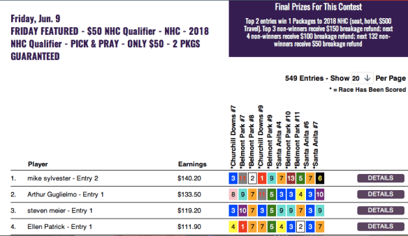 There was another exciting and unique contest on Friday over at HorsePlayers with an NHC qualifier that cost just $50 to play.