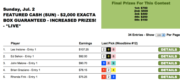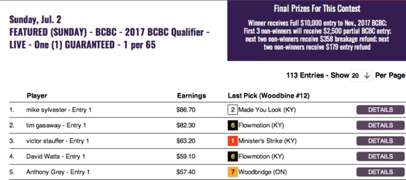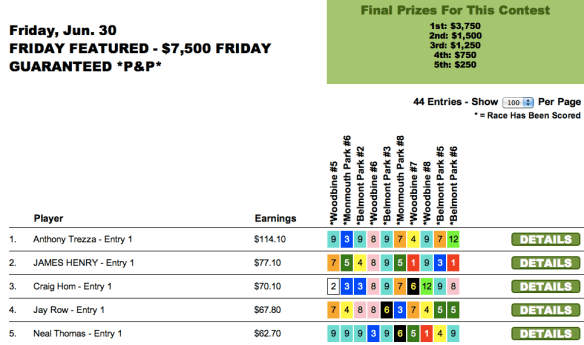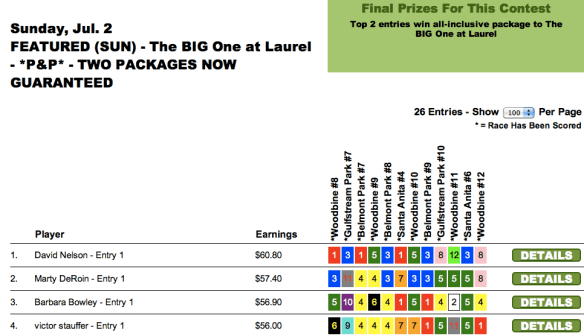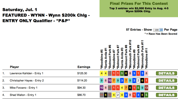 One of the other nice things about this particular weekend is that it technically isn’t over yet. There’s a very nice slate of featured, multi-track games on July 4th at HorseTourneys, including a Wynn qualifier and a $7,500 Guaranteed game. Both are Pick & Prays, so there’s no need for them to interfere with your existing Independence Day plans. And there’s also a wide array of single-track tourneys starring Belmont, Parx, Canterbury, Gulfstream, Santa Anita and Lone Star.