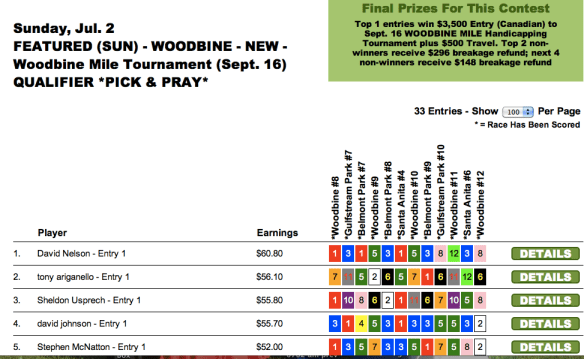 There were no fewer than 10 featured tourneys on Sunday, July 2. David Nelson took a swing at a few of them and while his score of $60.80 will set no Horse Tourneys records, it was still sufficient to land him in the top spot for not one…