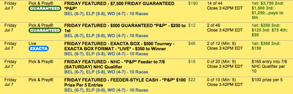 Speaking of Chicagoland, we want to wish good luck to the 14 HorseTourneys competing this weekend in the Arlington Handicapping Challenge. And also to our three representatives playing at Belmont in the Stars & Stripes Challenge.