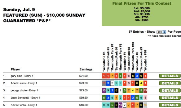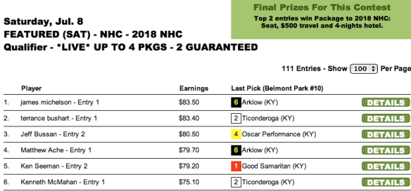 The day’s $10,000 Guaranteed game at HorseTourneys had an interesting result.