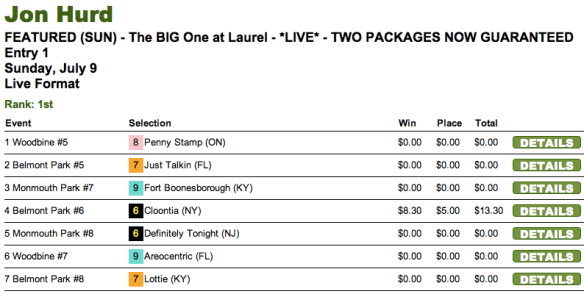 But for Hurd, in particular, the victory in The BIG One qualifier showcased an impressive handicapping achievement. Here’s how his scoresheet looked after 7 of the tourney’s 11 races.