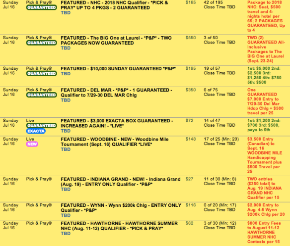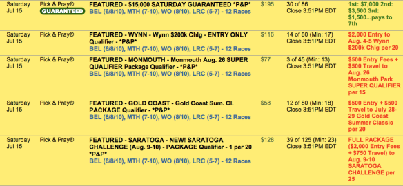 And don’t forget about our $1,500 Guaranteed Saturday Night Live tourney. This week’s should be especially fun. It closes at 8:35 pm ET and features Lone Star, Evangeline and Charles Town.