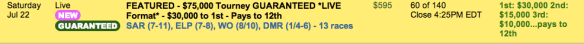 The weekend that so many look forward to all year—opening weekend at Saratoga and Del Mar—is here and HorseTourneys is marking the occasion with 19 featured tourneys, including a special 13-race, $75,000 Guaranteed tourney on Saturday that pays $30,000 to its skillful winner.