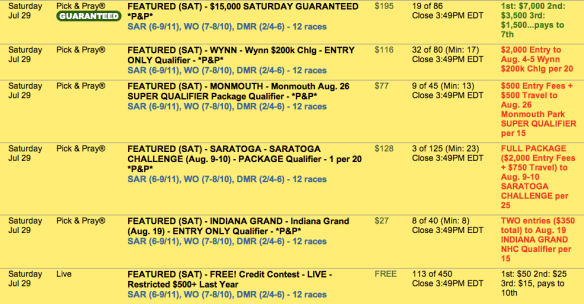 Equal good luck goes out to those of you playing in any of this weekend’s 20 featured tourneys at HorseTourneys and HorsePlayers. Win, lose or draw (dead heat?), it should be a lot of fun.