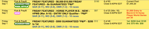 And we also have three key tournaments at HorsePlayers on Saturday: