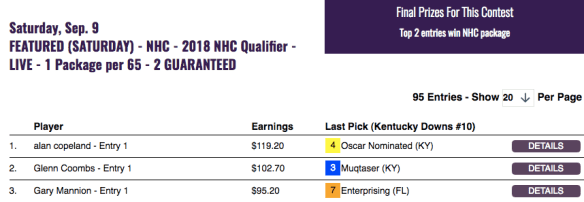 …to earn their seats to the 2018 NHC. These middle-September weekends may be a good time to take a shot at these guaranteed NHC qualifiers while some players experience a big of a Saratoga/Del Mar hangover.
