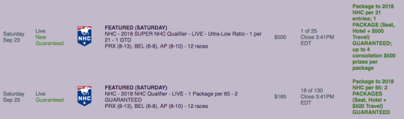 There are co-features at HorsePlayers on Saturday. Both are NHC qualfiiers and note that these two will be run in live-format. One of them is particularly special.