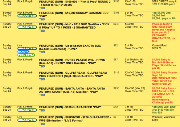 Or, for $116, you can take a last shot at playing for a $2,000 entry in Gulfstream’s Pick Your Spot Tournament on September 30 (next weekend!).