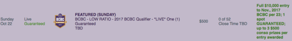 You can play in a Guaranteed BCBC qualifier on Saturday for $179. Or you could limit the field of competitors by playing in that day’s $1,000 Super Qualifier with a victory-friendly 1 in 11 winning ratio. Both of these BCBC games will operate in live-format this week.