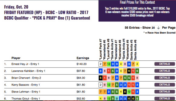 Last but not least, we had a blanket finish in our HorsePlayers BCBC Low Ratio qualifier on Sunday.