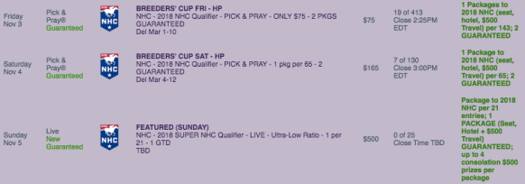 A friend (and frequent NHC qualifier) once told me that the day after the Breeders’ Cup is the absolute best day of the year to qualify for the NHC.