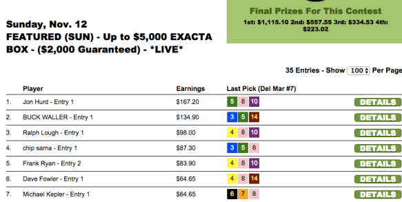 He hit a $133 exacta in the 9th race at GPW, and then chipped up modestly from there to take down the top money in our $2,000 Guaranteed Exacta tourney.