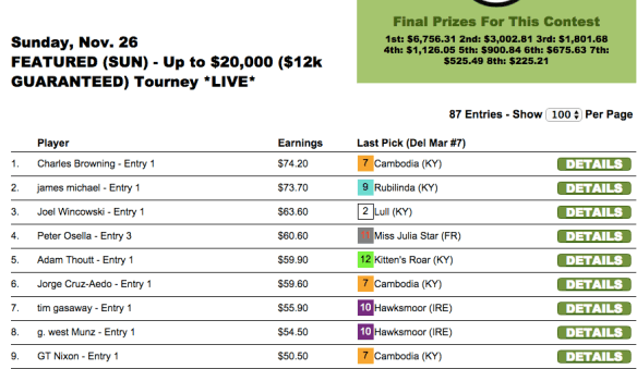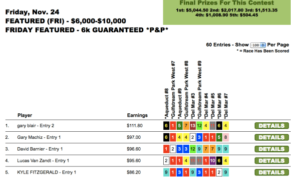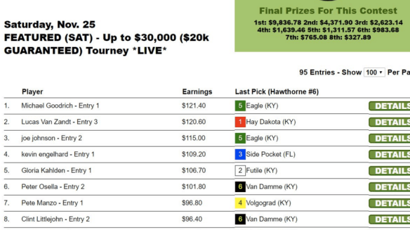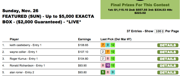 Another close one took place in our $2,000 Guaranteed Exacta tourney.
