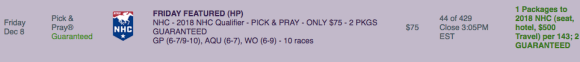 One is a “regular” $165 Pick & Pray with two seats guaranteed here at HorseTourneys. And the other…