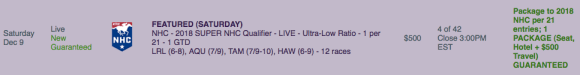…is a $500 Super Qualifier (live-format) over at HorsePlayers with one seat guaranteed and a highly attractive NHC-winning ratio of just one in 21.