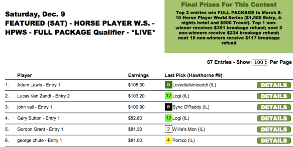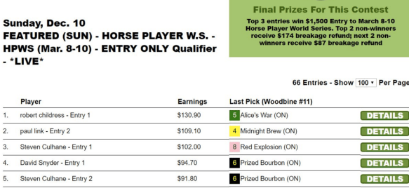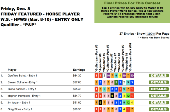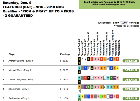 And over at HorsePlayers, the day’s top event was an NHC qualifier.
