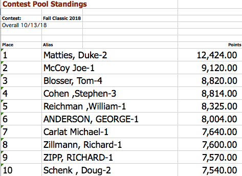 Here are the top 10 finishers at this year’s Orleans Fall Classic: