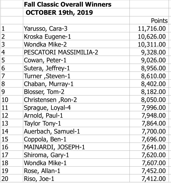Congratulations to Cara Yarusso, winner of the 2019 Orleans Fall Classic held October 17-19 at The Orleans Hotel and Casino in Las Vegas.