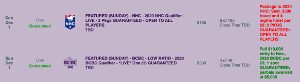 The NHC game s a “regular,” $165 qualifier with two spots guaranteed.