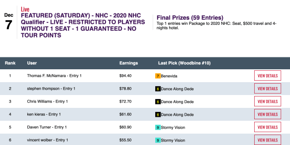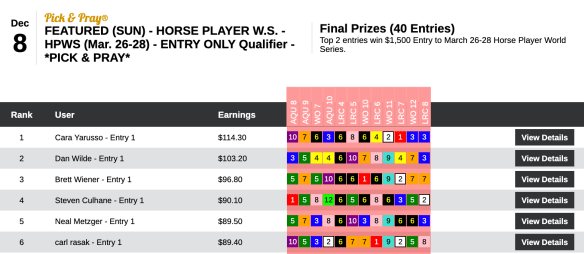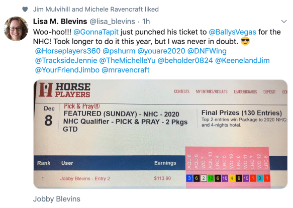 Over at HorsePlayers, there were two more NHC qualifiers (making for a whopping three on the day).