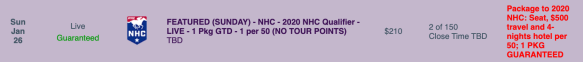Just as there’s still time to qualify for the NHC, qualifiers continue for the NHC Last Chance Tournament at Bally’s. One of every 10 entries in Sunday’s qualifier for it—at $59 each—will get a $500 spot in the NHC Eve competition. (And 2020 NHC Tour points will be available in that one too.)
