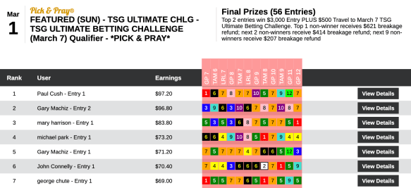 A last chance (but not the first or only chance) opportunity also took place Sunday in the form of our TSG Ultimate Betting Challenge qualifier.