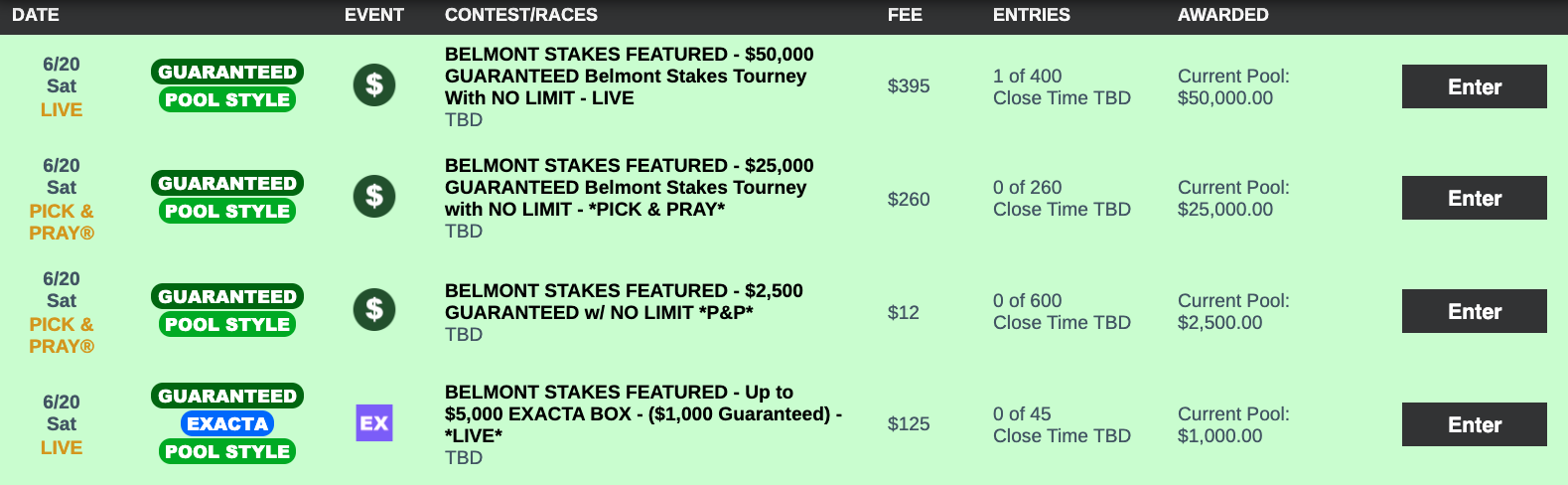 Before we sign off, we want to let you know about some special games on Belmont Stakes Day (June 20) that are now available for feeder play and direct entry.