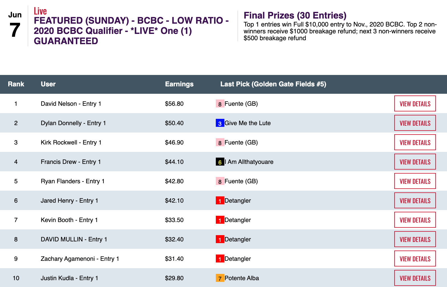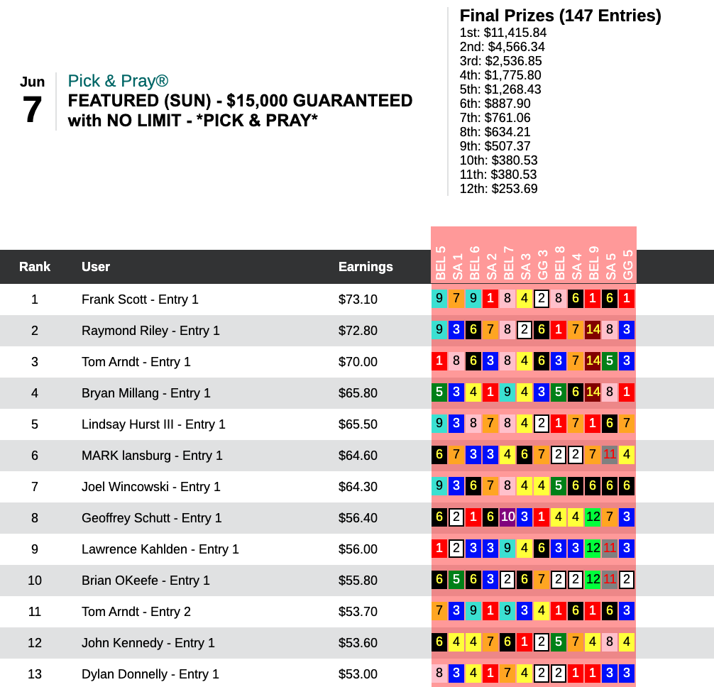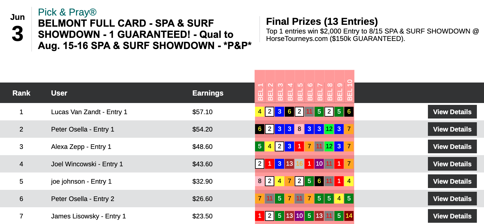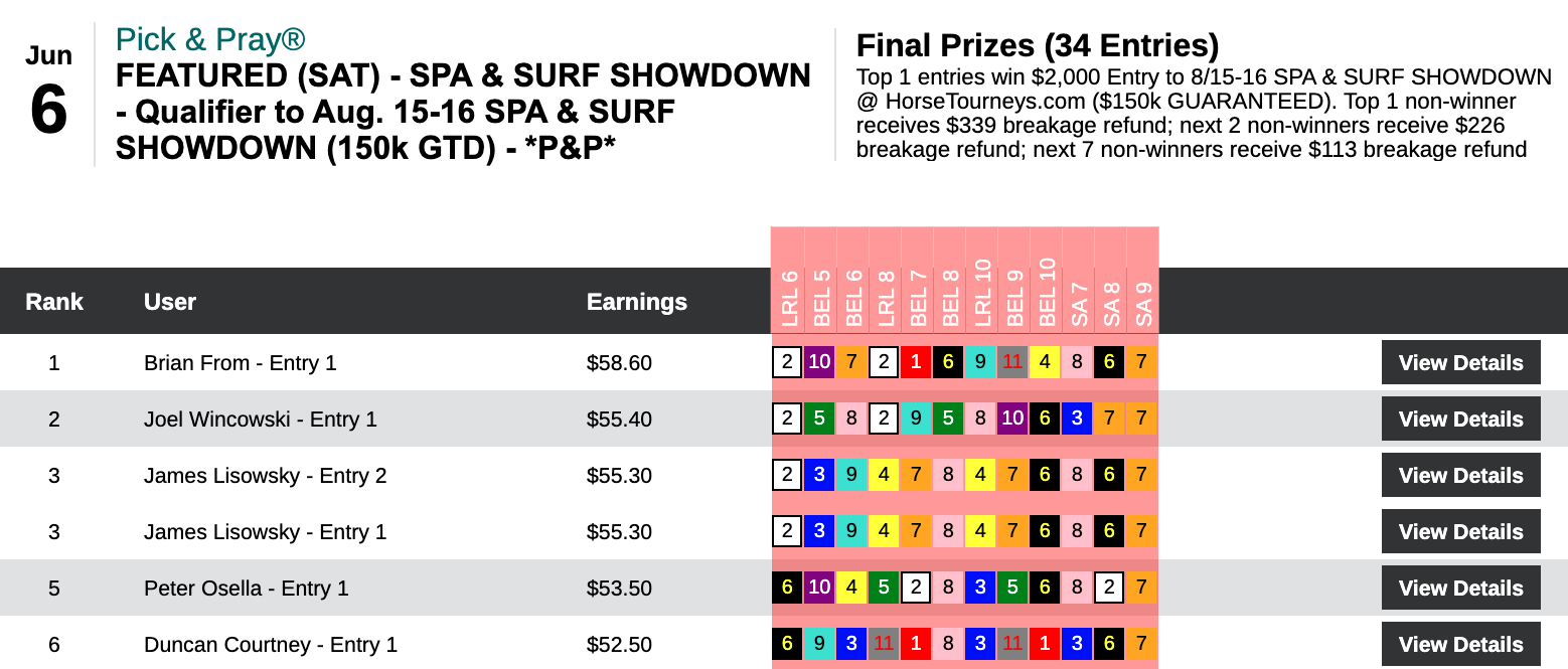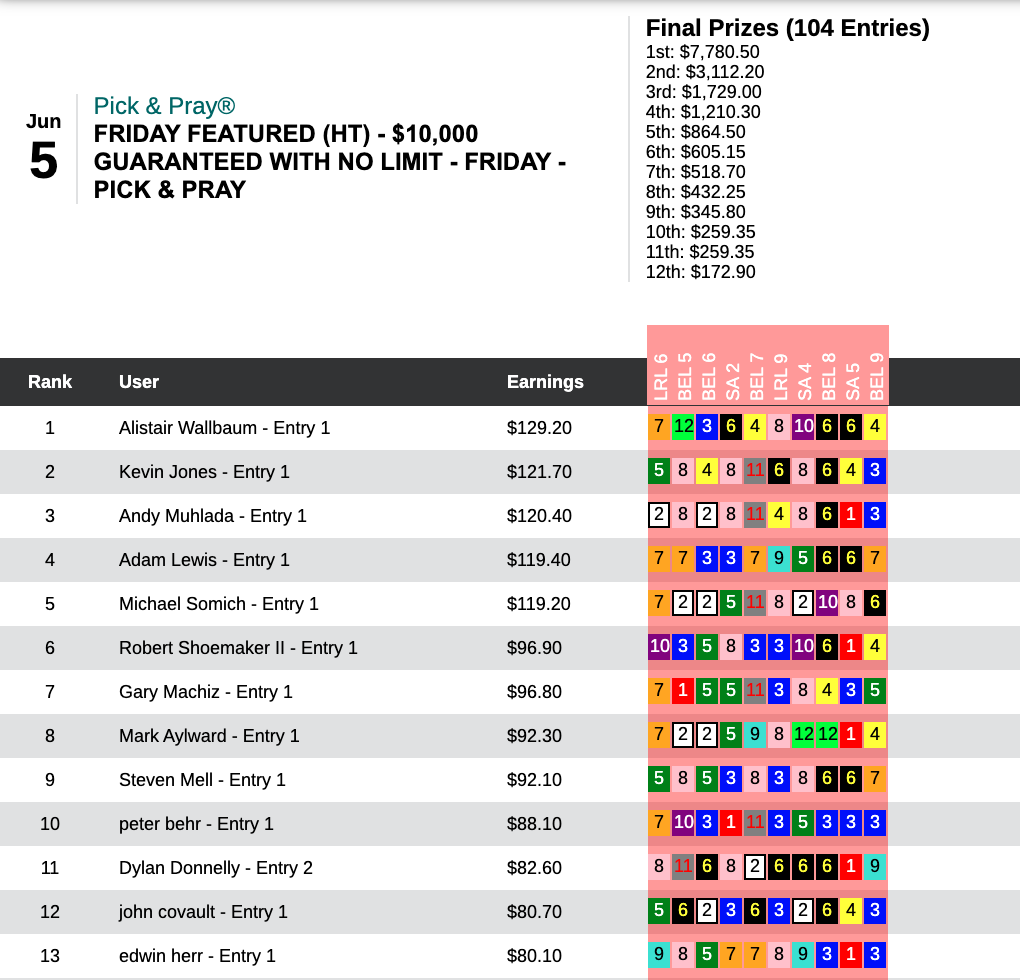 1 thought on “Evan Trommer the Only Person to Capture More than One First Prize as Chalky Wednesday and Sunday Lead to Many Different Paths to Victory; A 90-1 Shot Shakes Things Up on Saturday, Though (Weekly Recap June 3-7)
