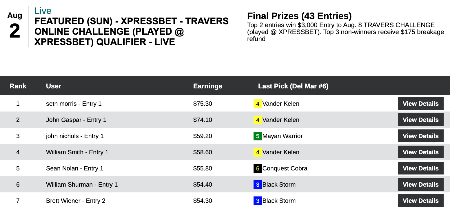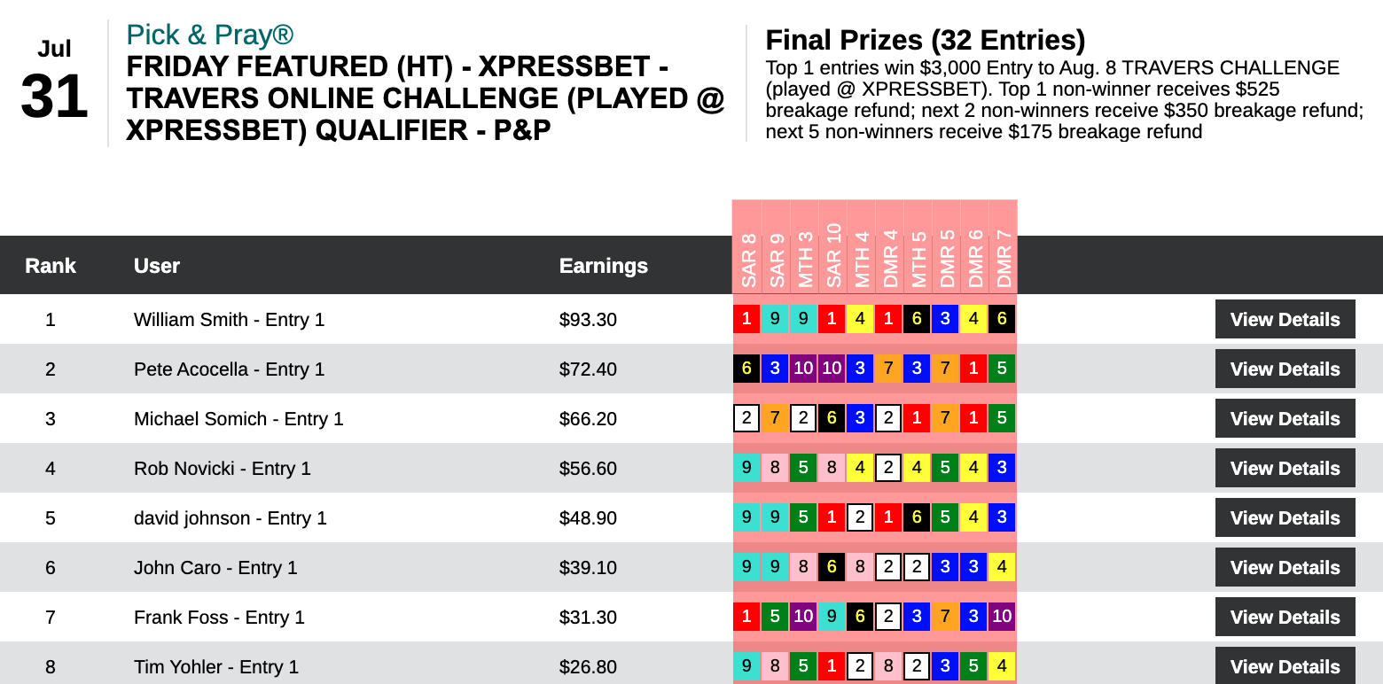 The other Friday feature here at HorseTourneys was an Xpressbet Travers Online Challenge qualifier.