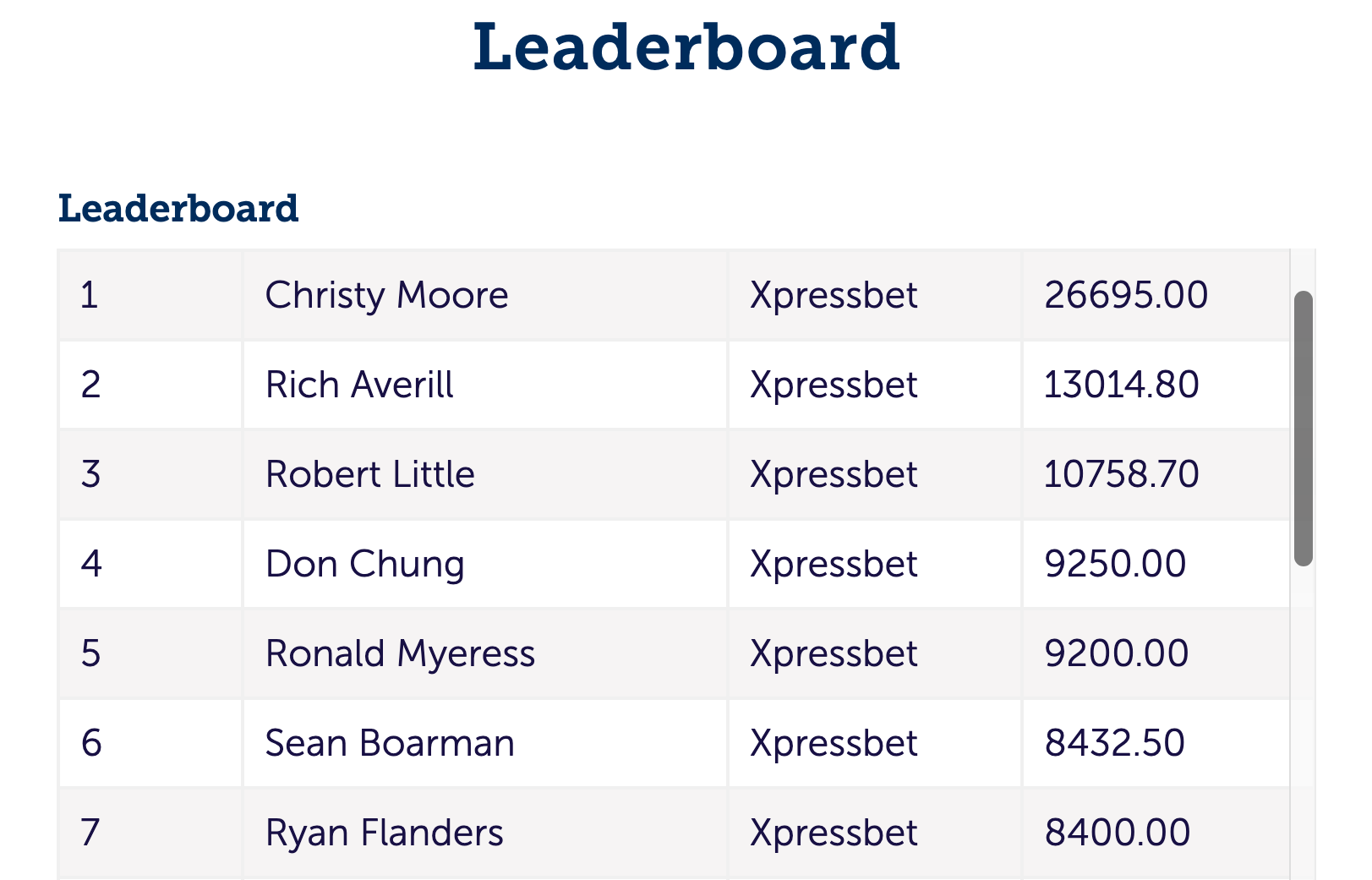 Now she’s certainly winning a lot. She was already double-qualified to the NHC prior to the Xpressbet Travers Online Challenge, so Moore chose a Pegasus World Cup seat as her prize for finishing first. Along with that came a winner’s bonus of $18,638 to go with her final bankroll total of $26,695.