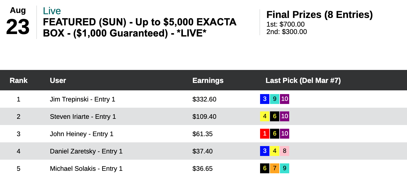 Jim Trepinski had 2 winners in Sunday’s $1,000 Guaranteed Exacta tourney—but he only really needed one of them.