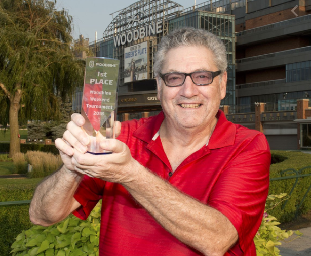 That’s Toronto’s Sheldon Usprech, shown above hoisting the winner’s hardware (glassware?) after taking an event at Woodbine. Usprech won a $1,500 Flo-Cal entry along with the next four finishers Sam “Hear Me” Raur, Charley Witt, Josh Thorpe (winner of an NHC seat on Friday) and NHC Hall of Famer (and first-ever Spa-Surf Showdown winner) Paul Shurman.