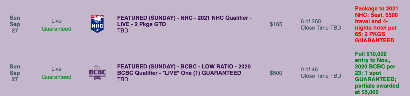 Sunday is our busiest day of the weekend with nine featured tourneys—seven here at two at HorsePlayers.