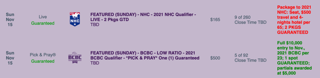 You’ll have something to look forward to for nine months if you win Sunday’s NHC qualifier. It’s a “regular,” $165 play-in with two “Bally’s Berths” guaranteed and a winning ratio of 1-per-65.