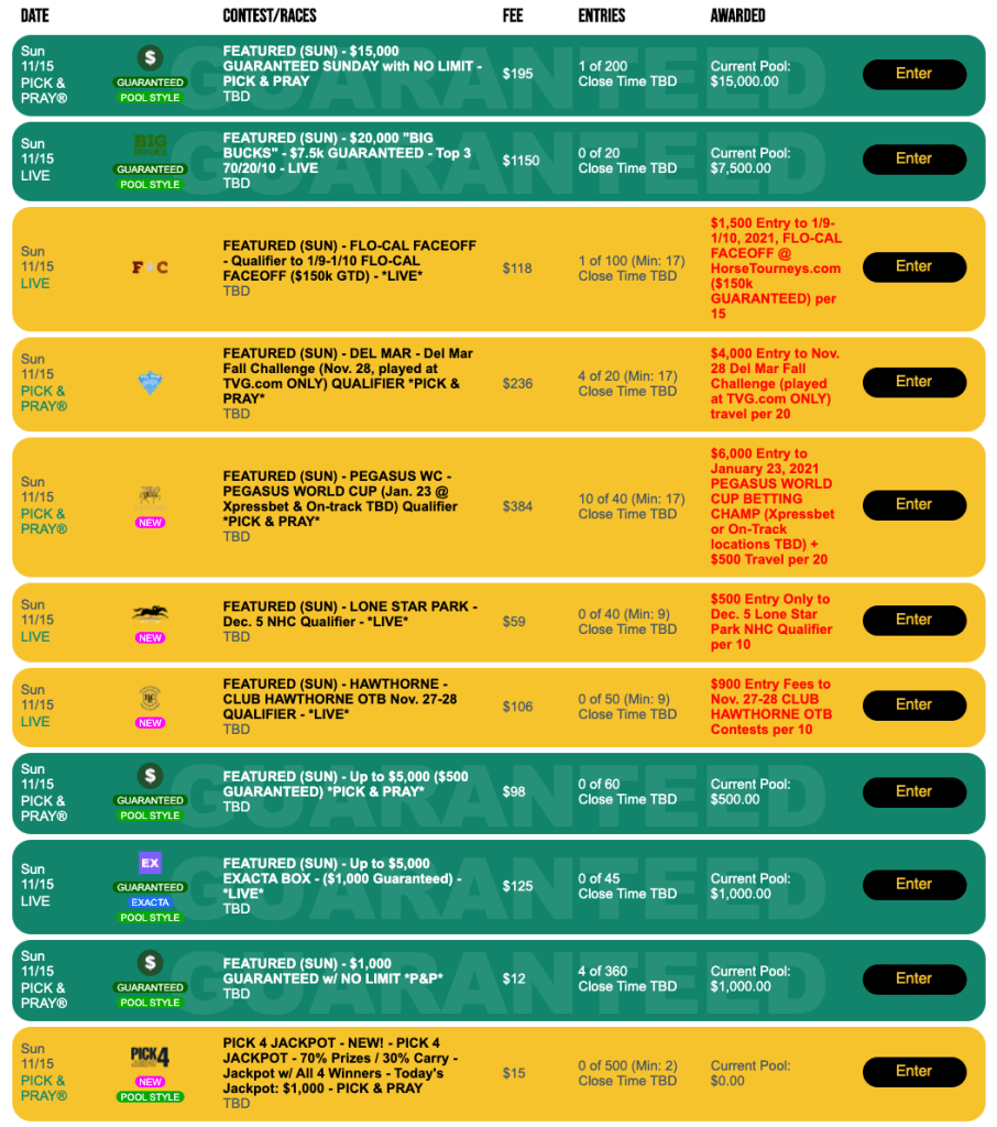 There you have it—20 featured tourneys to serve as an encore to Breeders’ Cup weekend. We hope you find them to be the source of both fun…and profits. Good luck!