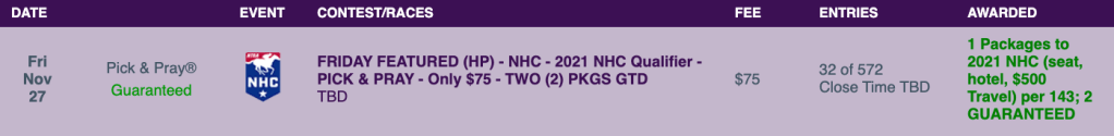 Two guaranteed spots to the NHC serve as the target on Saturday at HorsePlayers.