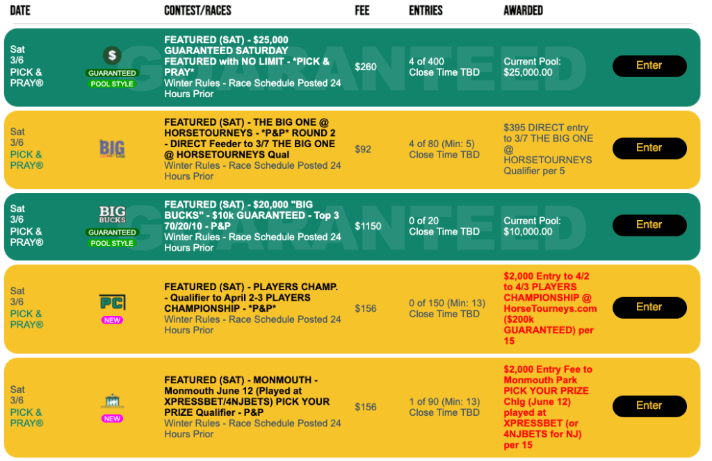 Back here at HorseTourneys, there are five more Pick & Pray featured events on Saturday.