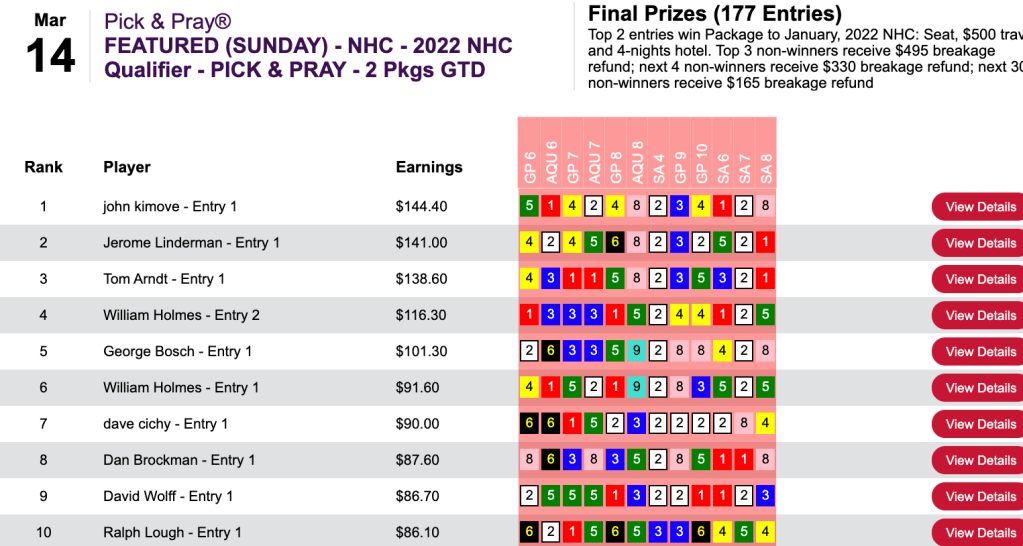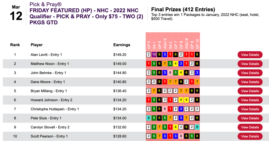 It was not at all amazing that Levitt won Friday’s Monmouth Pick Your Prize qualifier after submitting the same set of selections that earned himself the NHC seat.
