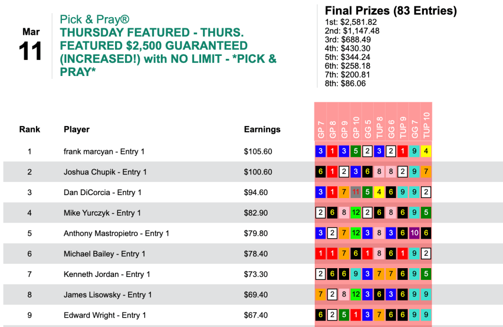 On Thursday, things started off pretty quietly for Frank Marcyan in the day’s $2,500 Guaranteed Pick & Pray.