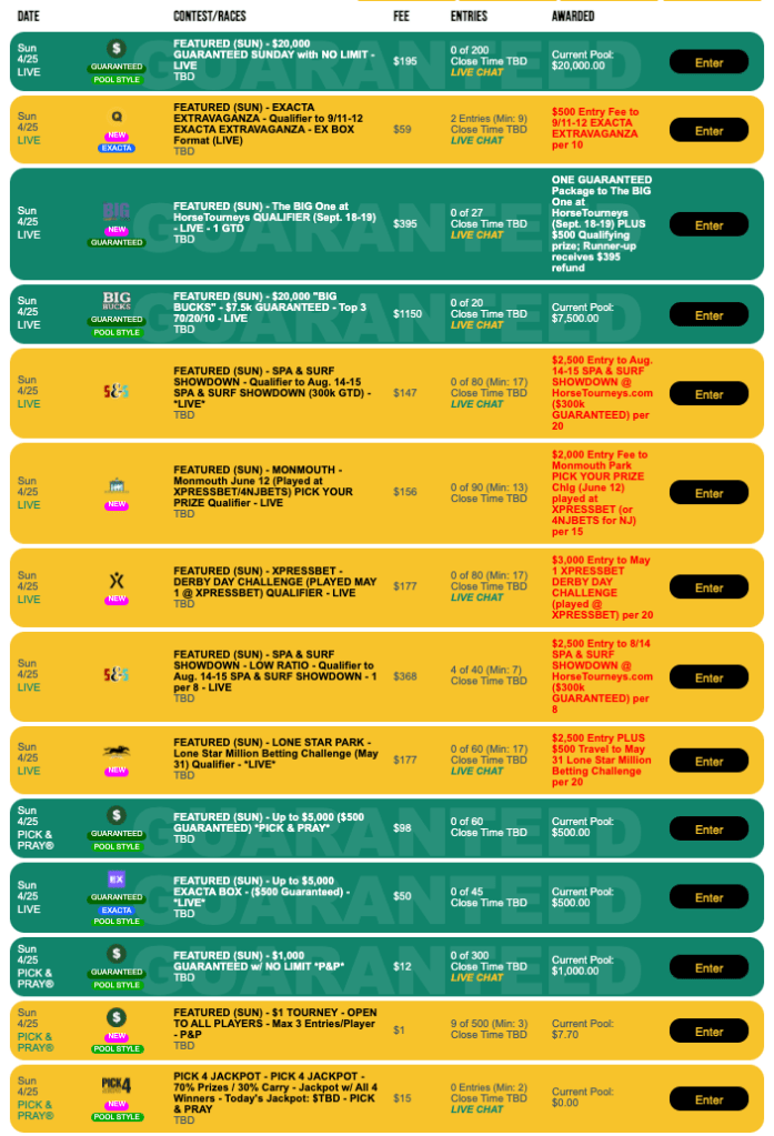 Starting this Sunday, HorseTourneys will begin offering 1-per-10 direct qualifiers to the “EE” for $59. That is just one of 24 featured events this weekend, which gets rolling with six marquee games on Friday.