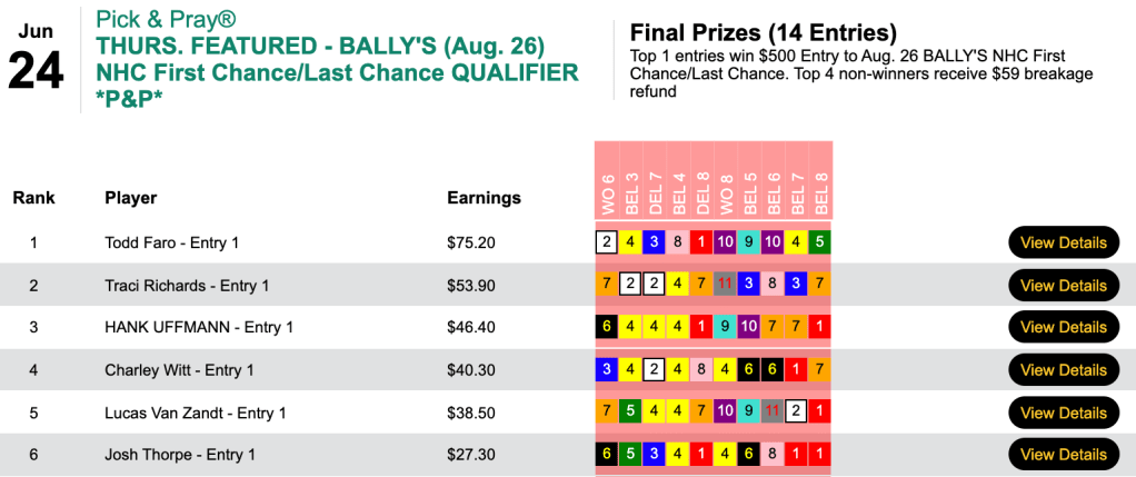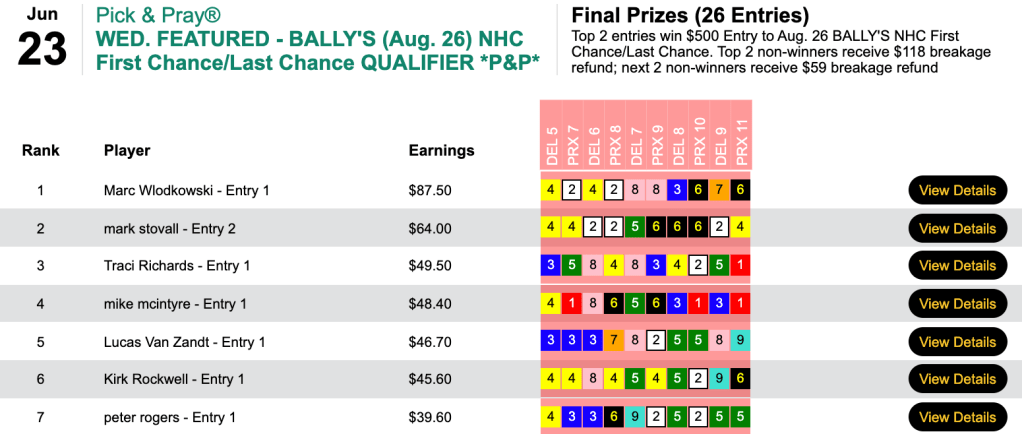 The other Wednesday feature was a Bally’s NHC First Chance/Last Chance qualifier.