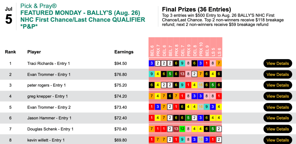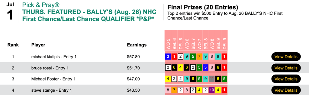 Perhaps they can all come up with another nice 9-1 shot in the Bally’s NHC First Chance/Last Chance tournament on August 26.