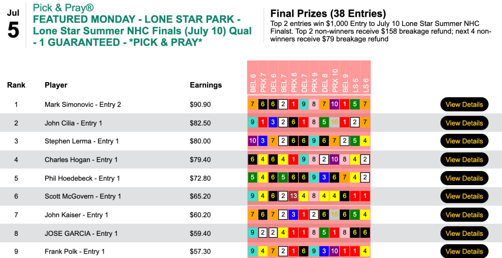 On Monday, we offered our Last Chance qualifier to this Saturday’s Lone Star Summer NHC Finals.